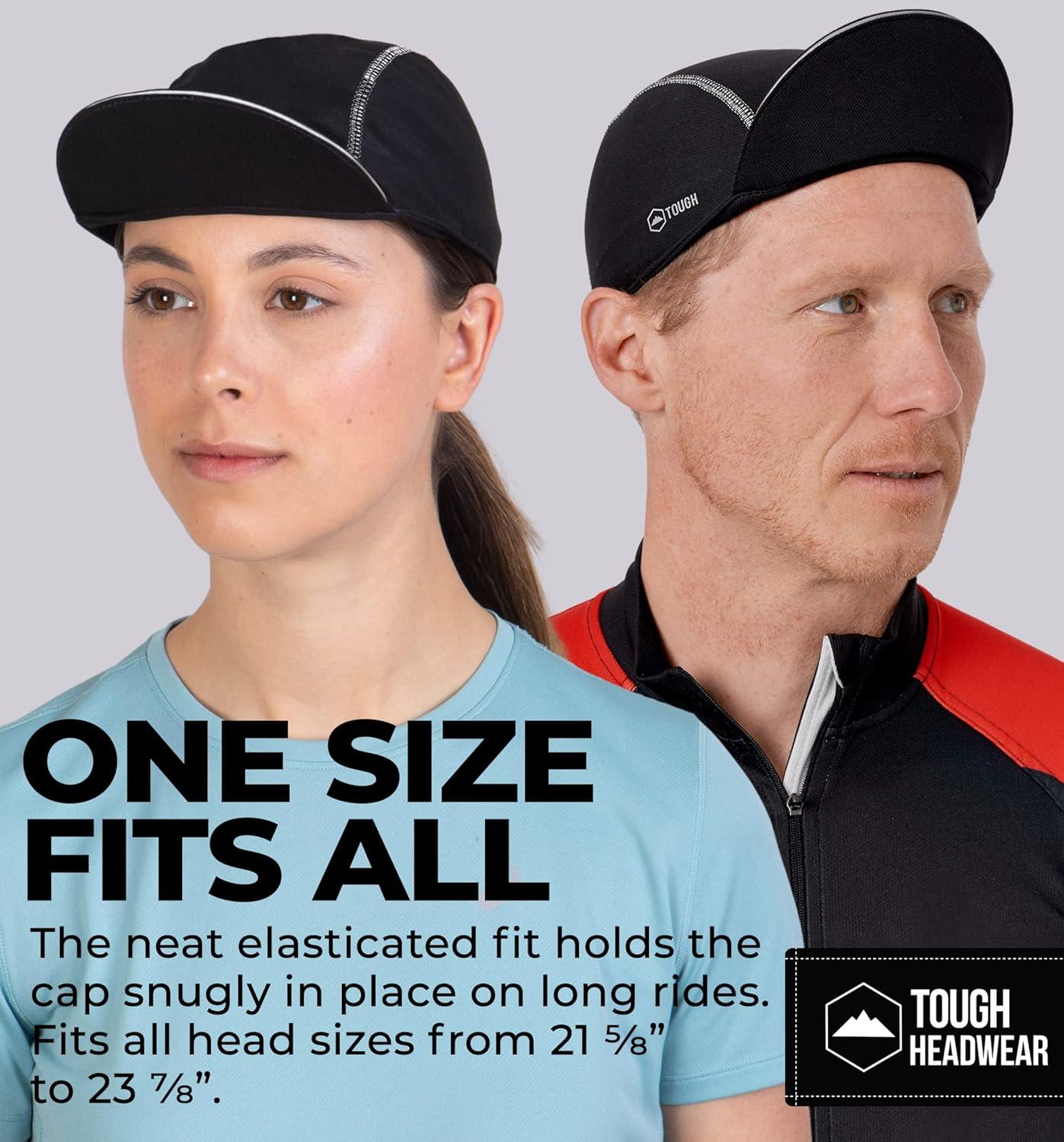 Tough Headwear Cycling Cap - Cycling Hat - Helmet Liner - Helmet Brim - Bike Cap - Bike Hat - Brim for Bike Helmet(Black)
