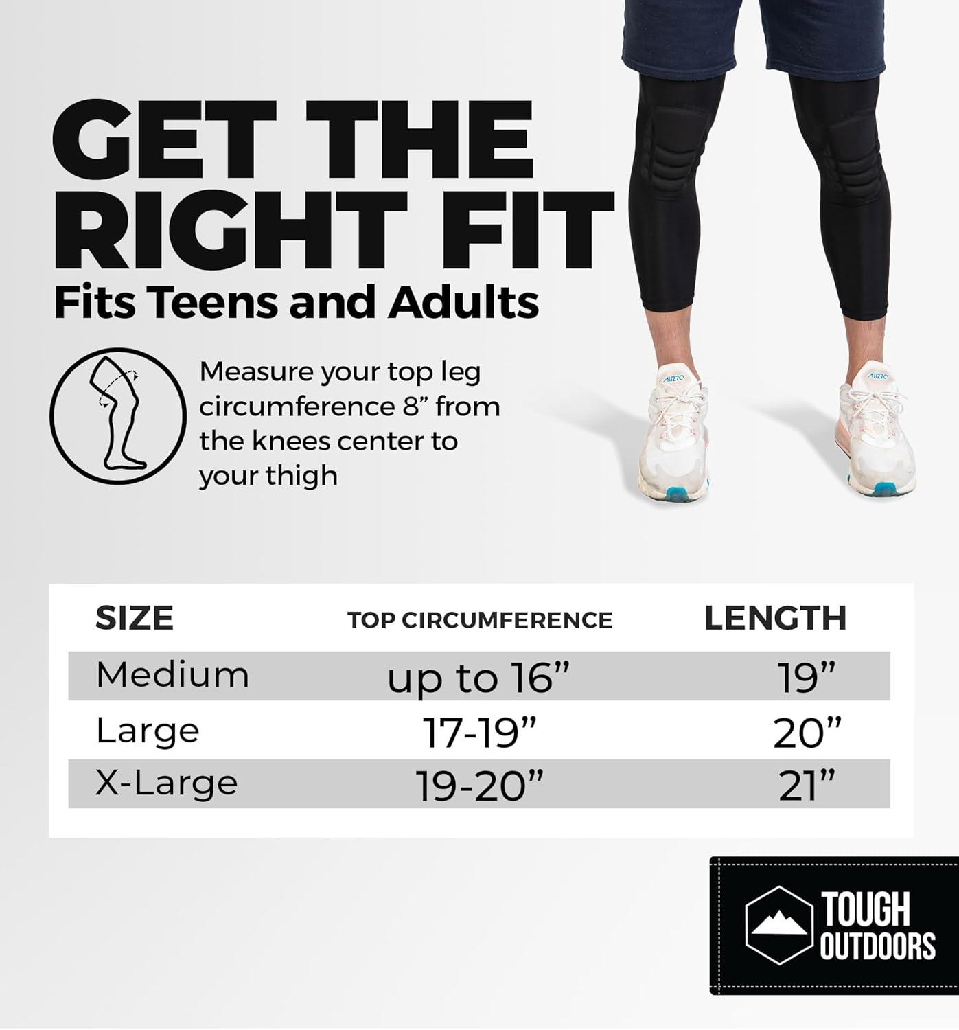 Tough Outdoors Compression Leg Sleeves – Full Leg Compression Sleeve for Men & Women, UV Leg Sleeves – Cycling Leg Warmers(Padded – Black)