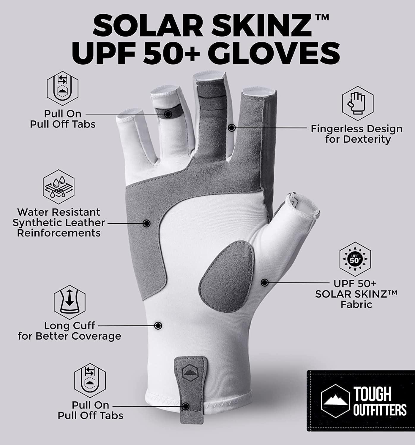 SUN PROTECTION: These sun protection gloves are made with UPF 50+ SOLARSKINZ fabric. They block 98% of harmful UVA/UVB rays and are certified when wet OR dry. Our fishing gloves even include a long cuff for better coverage.